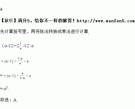 (2018·山东威海)化简(a-1)÷(-1)·a的结果是( )