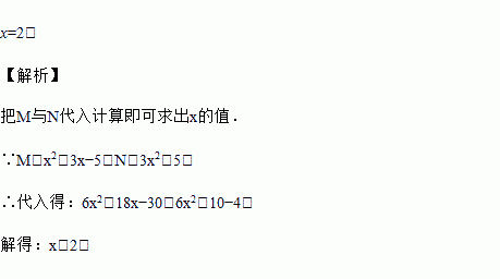 若已知M=x2+3x–5,N=3x2+5,并且6M=2N–4,求x.
