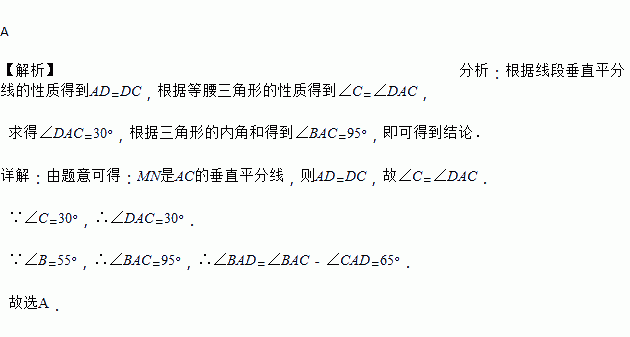 A. 65° B. 60° C. 55° D. 45°