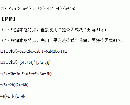 (1) ; (2)25(a+b)2-9(a-b)2 .