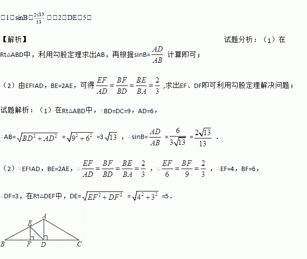 (2)现需要加装支架DE、EF,其中点E在AB上,BE=2AE,且EF⊥BC,垂足为点F,求支架DE的长.