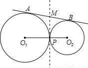 过P作圆O1,圆O2的公切线PM,交AB于M点,