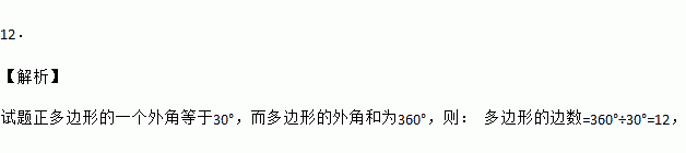 若正多边形的一个外角为30°,则这个多边形为正 边形.
