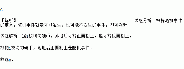 “抛一枚均匀硬币,落地后正面朝上”.这一事件是( )