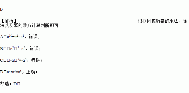 A. a10÷a2 B. (a2)3 C. (﹣a)5 D. a3•a2
