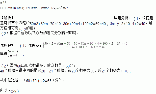 (2)若该班40名学生成绩的众数为X,中位数为Y.则(X-Y)2的值.