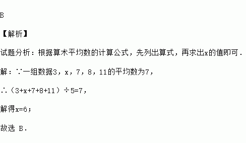 如果一组数据3,x,7,8,11的平均数为7,那么x为( )