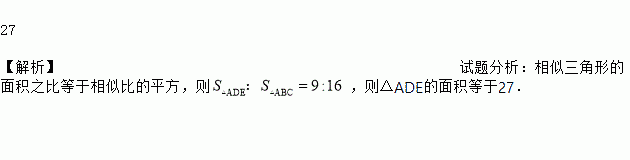 在△ABC中,DE∥BC,AD:AB=3:4,△ABC的面积等于48,则△ADE的面积等于___________.