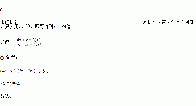 方程组,则x﹣y的值为( )