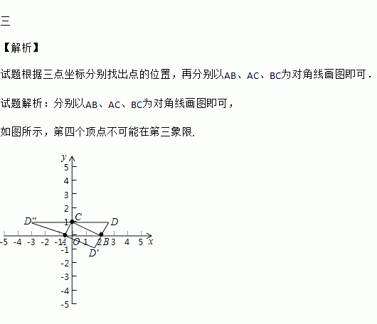 若以A(-0.5,0),B(2,0),C(0,1)三点为顶点画平行四边形,则第四个顶点不可能在第________象限.