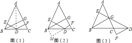 分析:(1)因为D为BC的中点,还能推出DF∥BG,从而可知道DF是BG的中位线,从而可得解.