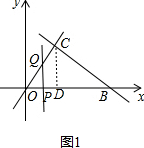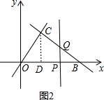 当点P在点D左侧时,即0≤t<2时,设直线l与OC交于点Q,如图1,![]()