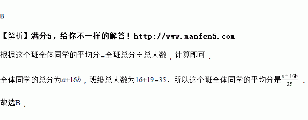 在一次考试中,某班19名男生总分得a分,16名女生平均得分b分,这个班全体同学的平均分是( )