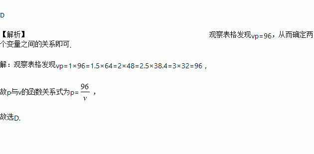 )的函数,下表记录了一组实验数据:P与V的函数关系式可能是( )