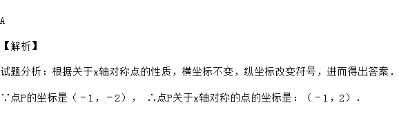在平面直角坐标系中,已知点P的坐标是(﹣1,﹣2),则点P关于x轴对称的点的坐标是( )