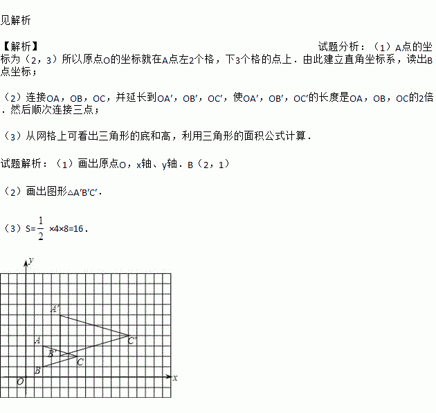 (1)请在方格纸上建立平面直角坐标系,使A(2,3),C(6,2),并求出B点坐标;