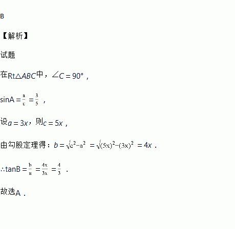 在Rt△ABC中,∠C=90°,sinA=,则tanB的值为( )