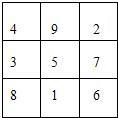 22、试一试:在下图的9个方格中分别填入1、2、3、4、5、6、7、8、9,使得每行的三个数、每列的三个数、斜对角的三个数之和都相等.