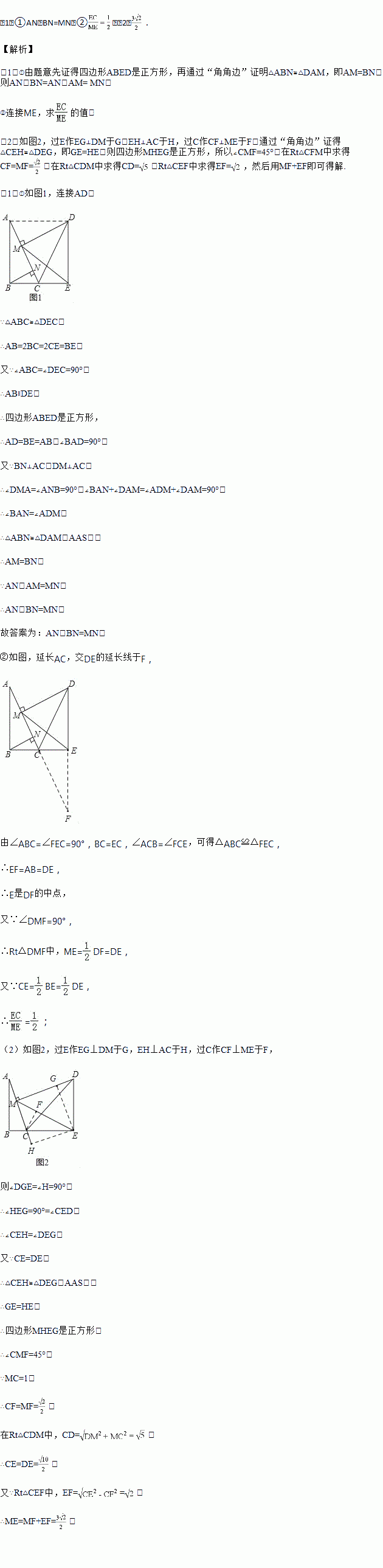 (2)如图2,若AB=CE=DE,DM=2,MC=1,求ME的长.