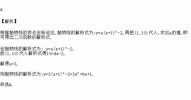已知二次函数的图象经过点(1,10),顶点坐标为(﹣1,﹣2),则此二次函数的解析式为( )