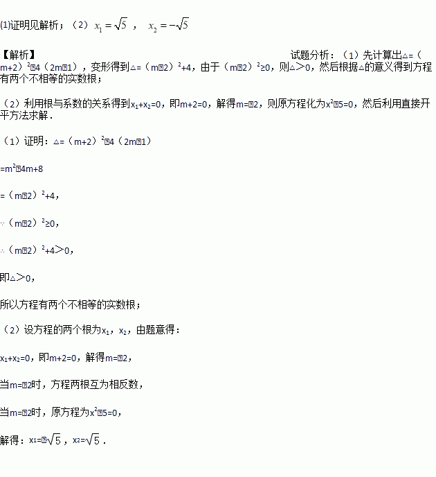 (2)当为何值时,方程的两根互为相反数?并求出此时方程的解.