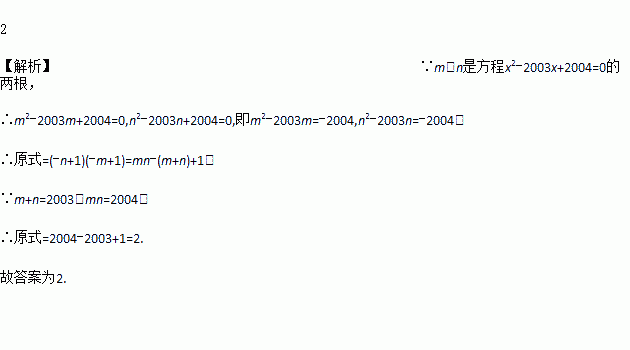 已知m、n是方程的两根,则与的积是__________。