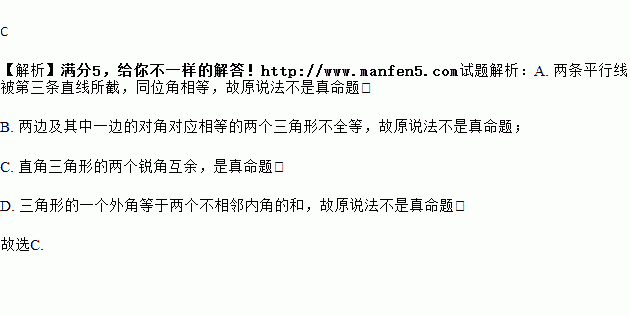 B. 两边及其中一边的对角对应相等的两个三角形全等