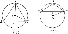 分析:如图(1)和(2),由等腰三角形的外心在三角形的底边的高上,根据勾股定理求出OD的长,进一步求出BD的长,根据三角形的面积公式即可求出答案.