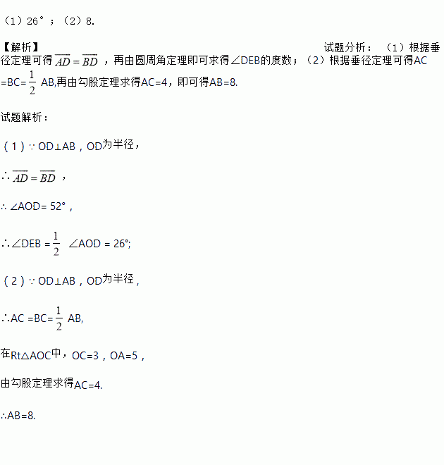 如图, 是⊙O的一条弦, ,垂足为,交⊙O于点D,点在⊙O上。