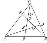 ∴S△XYZ=S△ABE-S四边形AEZX-S△AFX-S四边形FXYB=$\frac{3}{4}$-$\frac{7}{20}$-$\frac{1}{10}$-$\frac{1}{5}$=$\frac{1}{10}$.