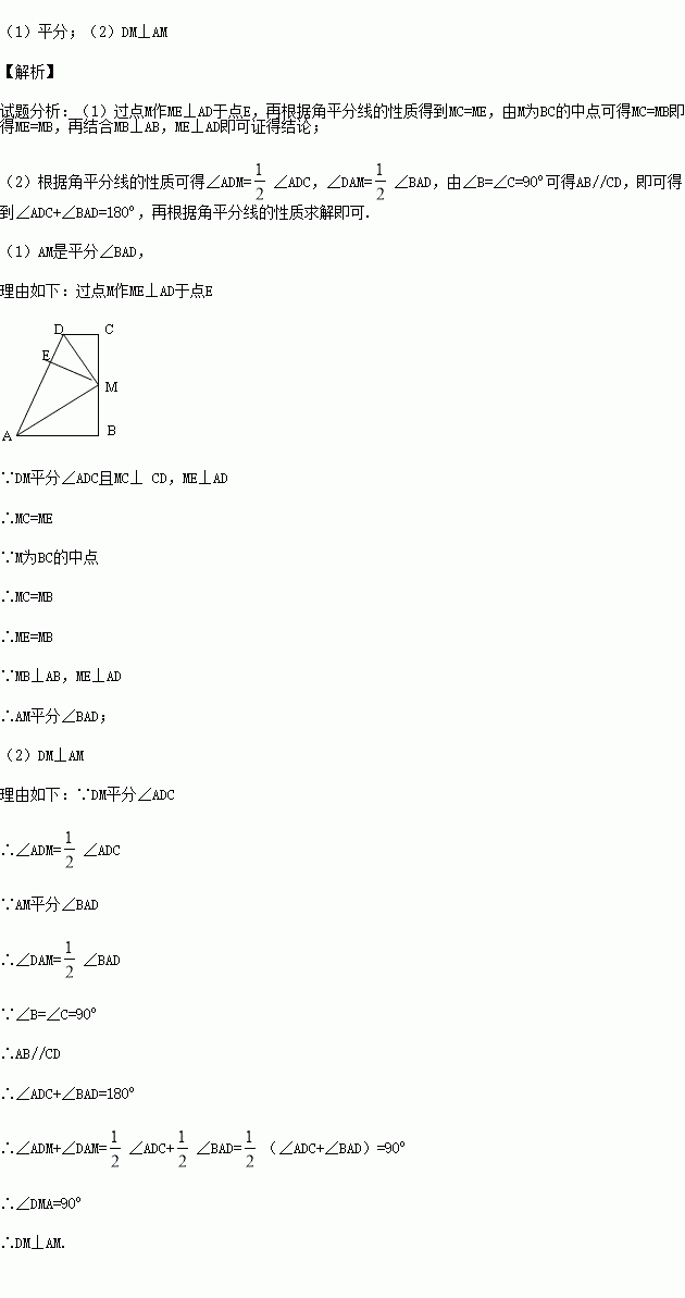 (1)若连接AM,则AM是否平分∠BAD?请你证明你的结论;