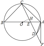 分析 (1)设CE=6k,ED=5k,AE=2a,BE=3a,过点O作OH⊥CD垂足为H,则CH=HD,由△OHE∽△FAE,得$\frac{HE}{OE}$=$\frac{AE}{EF}$求出EF=$\frac{2{a}^{2}}{k}$,由CE•ED=BE•AE求出k、a关系,得EF=10k,得到DE=DC,得△DEA、△BCE都是等腰三角形,在RT△ABC中利用勾股定理即可解决问题.