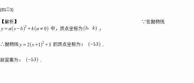 抛物线y=2(x+1)2+3 的顶点坐标是_________________.