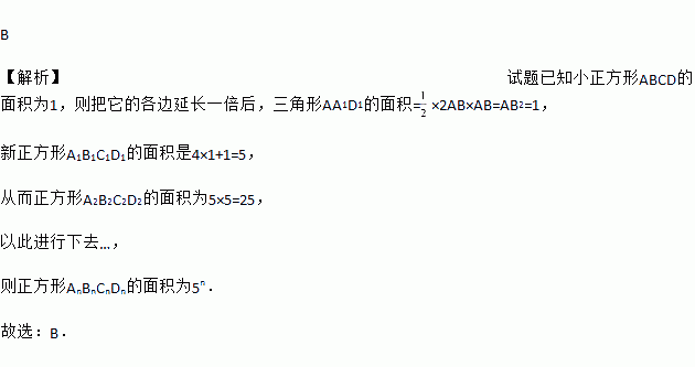 如图,已知小正方形ABCD的面积为1,把它的各边延长一倍得到新正方形A1B1C1D1;把正方形A1B1C1D1边长按原法延长一倍得到正方形A2B2C2D2;以此进行下去…,则正方形AnBnCnDn的面积为( )