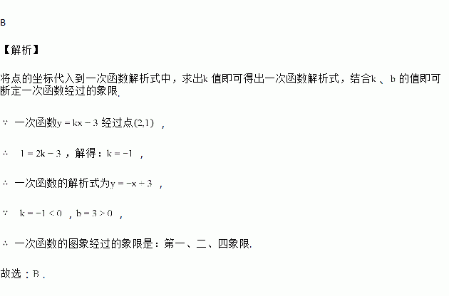 已知一次函数经过点(2,1),则一次函数的图象经过的象限是( )