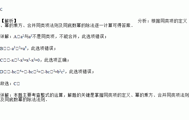 C. (﹣x)2﹣x2=0 D. (﹣bc)4÷(﹣bc)2=﹣b2c2