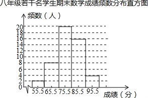 某校王老师随机抽取本校八年级一部分学生上学期期末考试的数学成绩作了统计分析,绘制成如下频数分布表和频数分布直方图,请你根据图表提供的信息,解答下列问题: