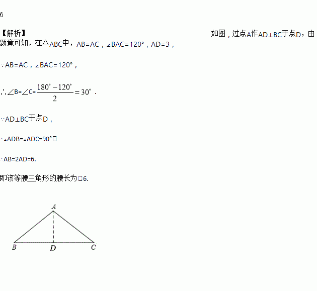 如图等腰三角形的顶角是120°,底边上的高是3,则腰长为_____.