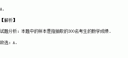 今天我们全区约1500名初二学生参加数学考试,拟从中抽取300名考生的数学成绩进行分析,则在该调查中,样本指的是( ).