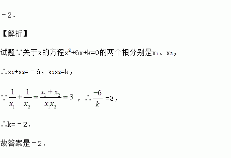 已知关于x的方程的两个根分别是、,且,则k的值为___________.