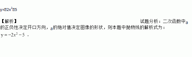 y=﹣2x2﹣5 【解析】试题分析:二次函数中a的正负性决定开口方向,a的绝对值决定图像的形状,则本题中抛物线的解析式为: .