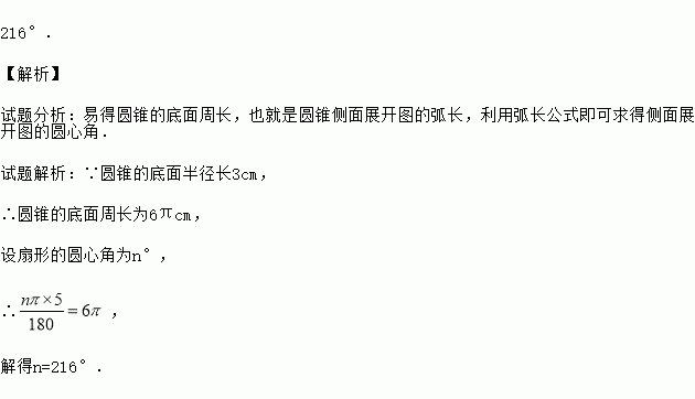 圆锥的母线长5cm,底面半径长3cm,那么它的侧面展开图的圆心角是 度.