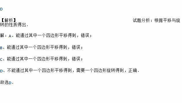 下列图形中,不能通过其中一个四边形平移得到的是 ( )