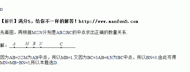 已知线段AB=2,延长AB到C,使BC=3AB,M、N分别是AB、BC的中点,则( )