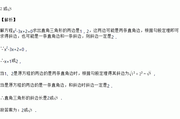 已知直角三角形的两条边长分别是方程的两个根,则此直角三角形的斜边长是________.