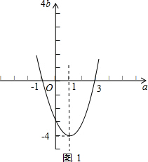 将4b看成a的函数,由函数4b=(a-1)2-4的性质结合它的图象(如图1所示),