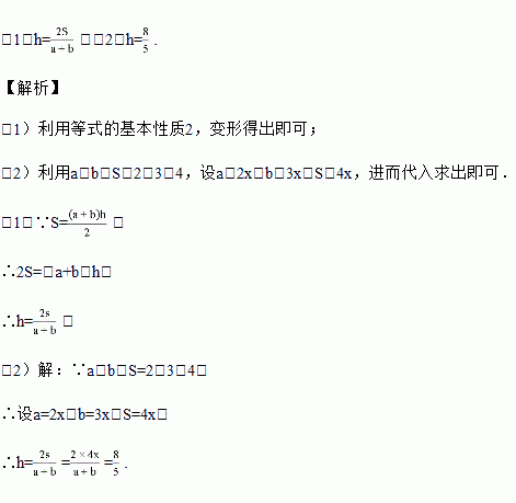 (1)把上述的公式变形成已知S,a,b,求h的公式.
