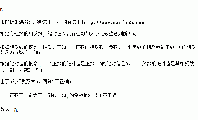 A. 若两个数互为相反数,则这两个数一定是一个正数,一个负数 B. 一个数的绝对值一定不小于这个数