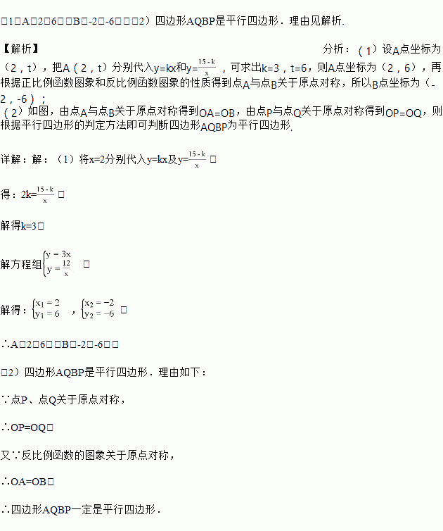 (2)在x轴上取关于原点对称的P、Q两点,(P点在Q点的右边),试问四边形AQBP一定是一个什么形状的四边形?并说明理由.