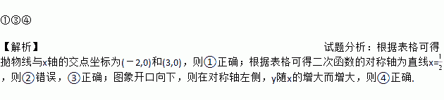 ①抛物线与x轴的一个交点为(3,0); ②函数y=ax2+bx+c的最大值为6;